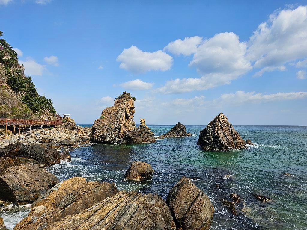 사근진해변의 무지개 방파제도 인기 포토스팟이에요. 파스텔톤으로 칠해진 방파제가 푸른 바다와 어우러져 동화 같은 풍경을 만들어내죠. 특별한 시설은 없지만 예쁜 색감 덕분에 사진 찍기 좋아하는 분들이 많이 찾는 곳이에요. 맑은 날에는 에메랄드빛 바다와 함께 환상적인 사진을 남길 수 있어요.