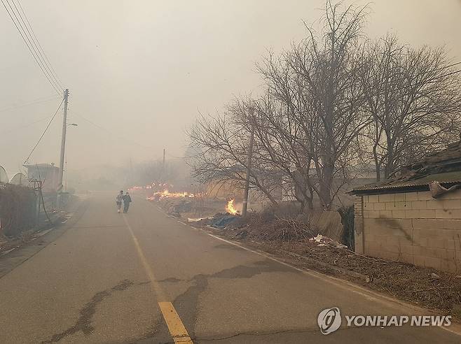 산불이 민가, 축사, 전신주 등으로 확산되자 지역 주민과 요양병원 관계자들이 긴급히 대피했습니다.