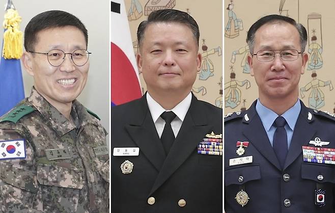 육군총장에는 김규하 미사일전략사령관(육군 중장·육사 47기)이, 해군총장에는 강동길 합참 군사지원본부장(해군 중장·해사 46기)이, 공군총장에는 손석락 공군 교육사령관(공군 중장·공사 40기)이 각각 임명됩니다.