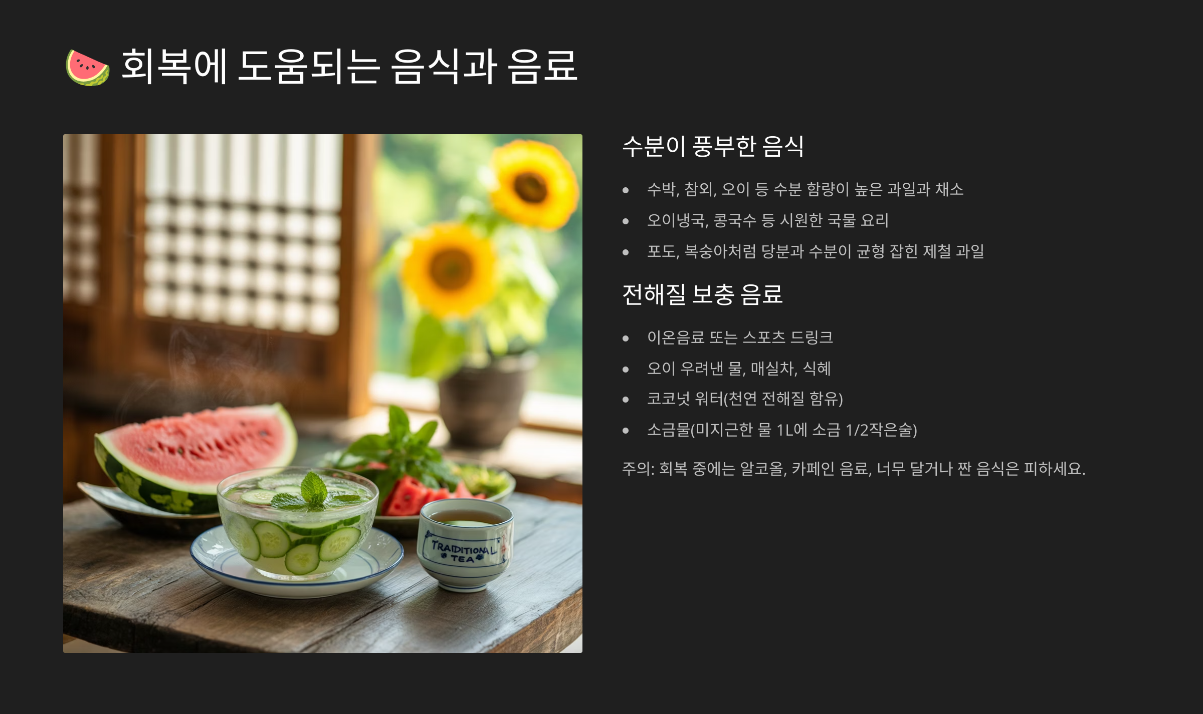 🍉 회복에 도움되는 음식과 음료