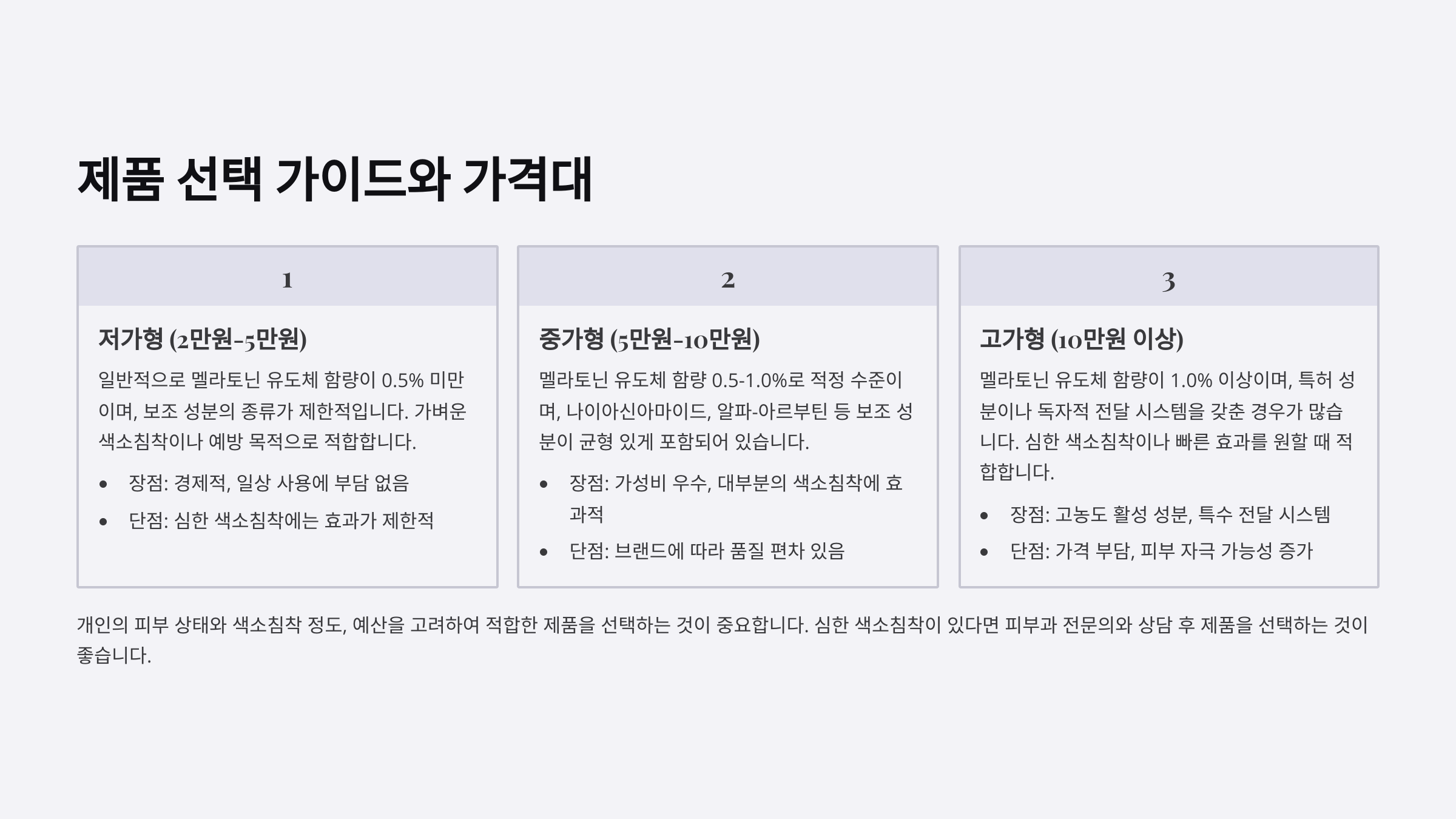 가격대는 정말 다양해요. 로드샵 브랜드는 2-3만원대, 중저가 브랜드는 5-8만원대, 프리미엄 브랜드는 10만원 이상의 제품들이 있답니다. 비싼 제품이 무조건 좋은 것은 아니에요. 성분 구성과 농도, 제형, 용량 등을 종합적으로 고려해서 가성비 좋은 제품을 선택하는 것이 현명해요. 온라인 리뷰와 성분 분석 사이트를 활용하면 도움이 된답니다.