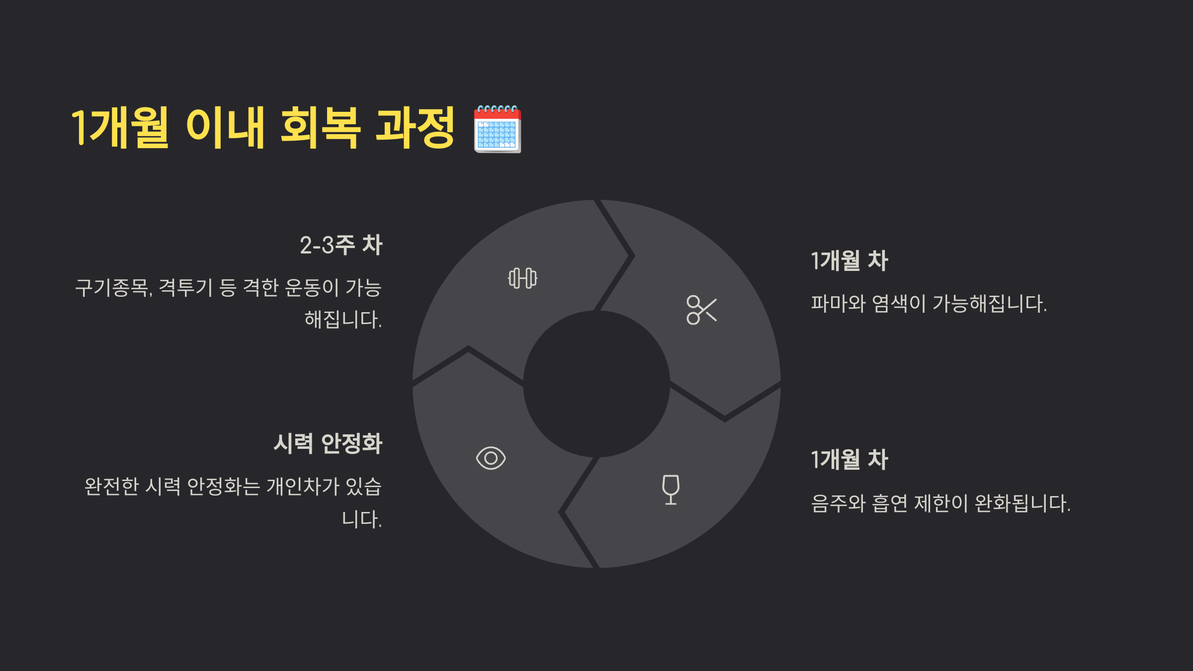 | 4주차 | 시력 최종 안정화 | 눈 건강식품 섭취 병행 권장 |