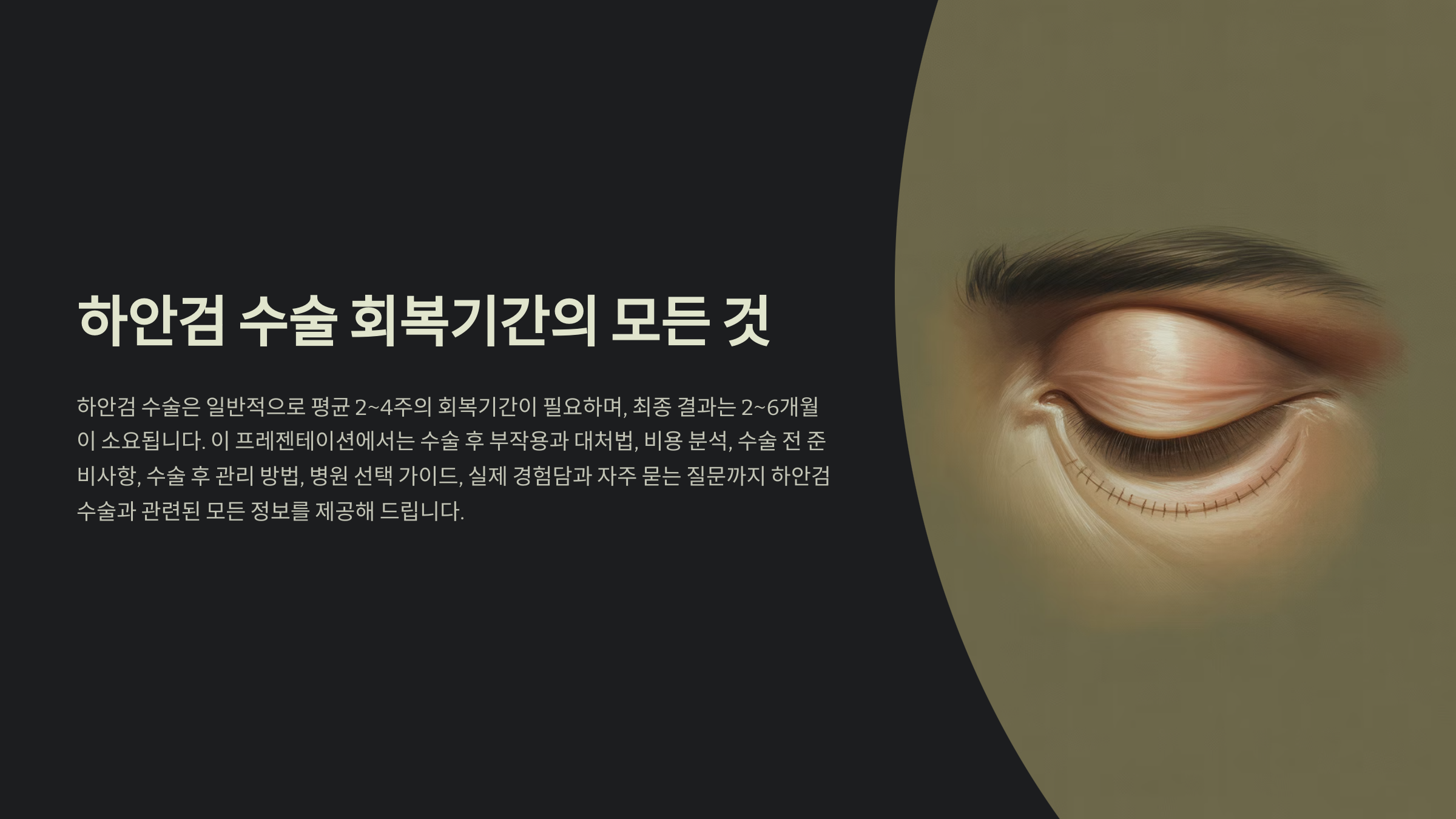 하안검 수술은 단순히 미용적인 목적뿐만 아니라 기능적인 개선도 가져올 수 있어요. 눈 밑의 과도한 지방과 피부가 시야를 가리거나 눈물이 고이는 문제를 해결할 수 있답니다. 오늘은 하안검 수술의 회복기간, 부작용, 그리고 비용에 대해 자세히 알아보도록 할게요! 😊