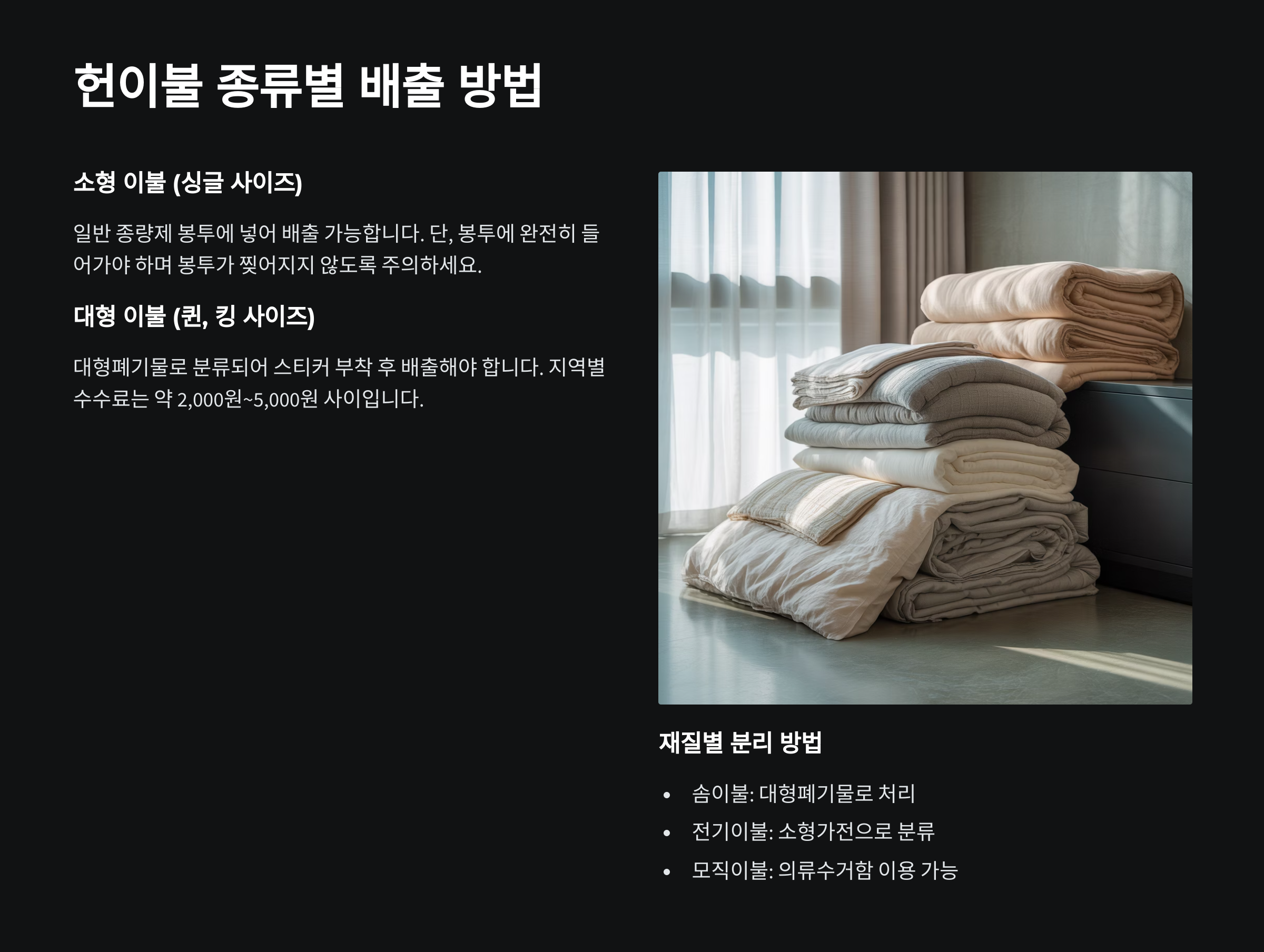 집에 쌓여있는 헌이불, 어떻게 버려야 할지 막막하신가요? 🤔 잘못 버리면 최대 100만원의 과태료가 부과될 수 있어요. 이불은 종류와 지역에 따라 배출 방법이 다르기 때문에 정확히 알고 버려야 해요. 오늘은 헌이불을 안전하고 올바르게 처리하는 모든 방법을 자세히 알려드릴게요!
