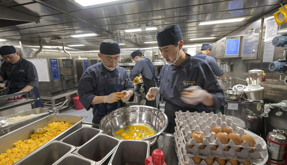 승조원들의 식사는 3끼 정해진 시간에 제공되며, 메뉴는 최대한 균형 잡힌 식단으로 구성돼요. 하지만 장기간 항해를 하다 보면 같은 음식이 반복될 수 있어요. 그래서 주기적으로 메뉴를 바꾸려고 노력한다고 해요.