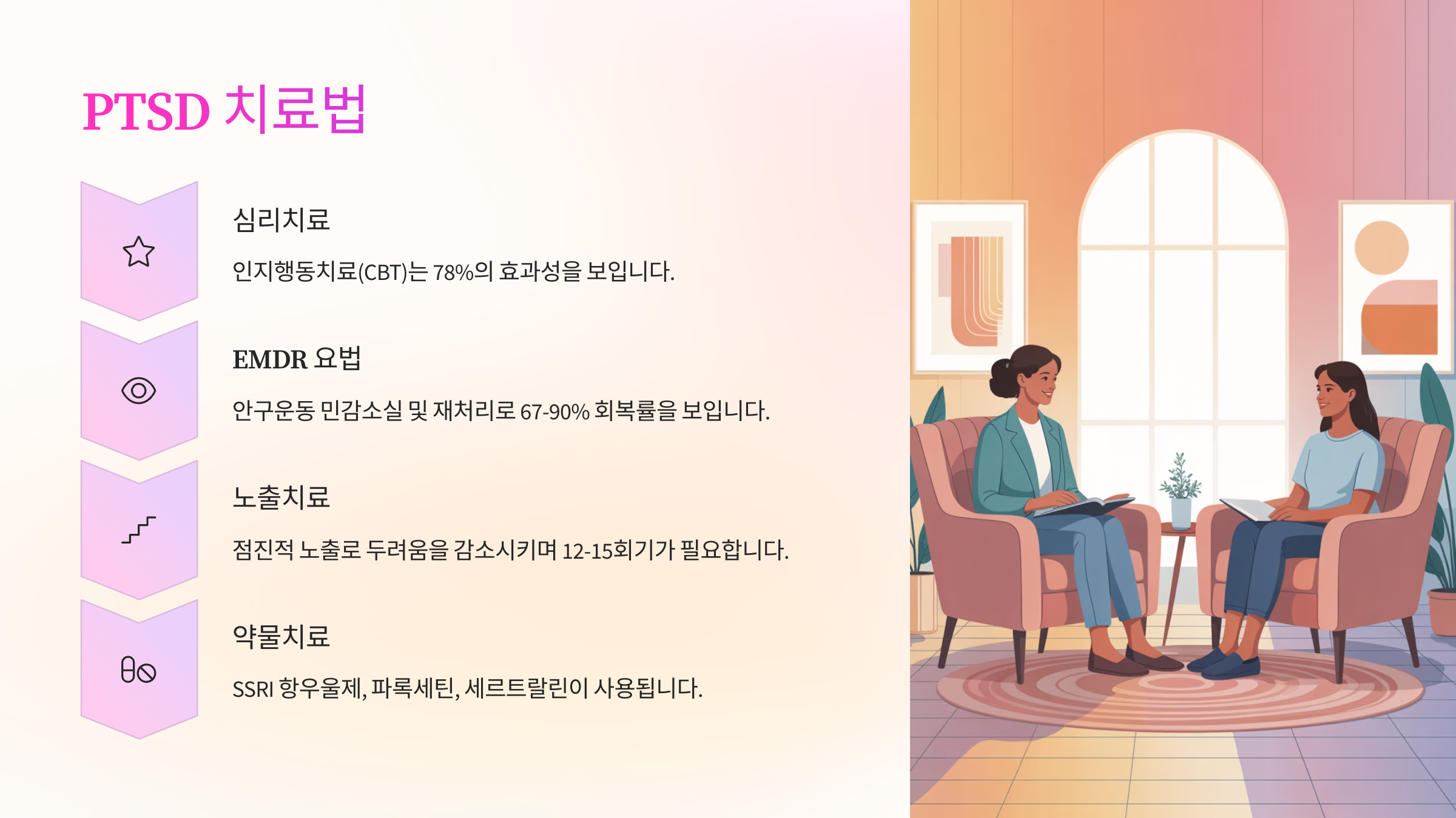 💡 PTSD는 단순히 과거의 상처가 아니라 현재의 삶에도 깊은 영향을 주기 때문에, 조기 발견과 사회적 관심이 무엇보다 중요해요.